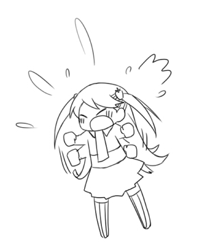 少女的臉頰瞬間染上一層比她的淺桃子色長髮還要顯眼的紅色,似乎對少年提出的要求感到害羞而慌張,她握起雙拳揮舞進行毫無無用武之地的虛弱抗議。