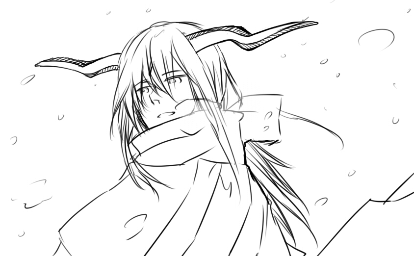 梧予,換了衣服比較像大學生。(?)哥哥,角修正。大概會畫成這樣子?彷書,女僕裝。戳散雪塊心滿意足的哥哥。威鼓,下一秒是轉頭抓蟲。腰至小腿的刺青紋路還在考慮。