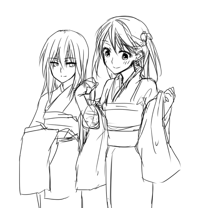 湖綾和宇晝,浴衣。在漂亮小姐面前的威鼓。