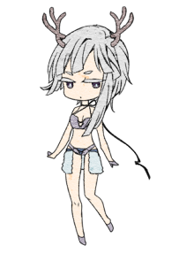 穿著西式洋裝,喜歡打領巾,頭上有一對小巧的角。