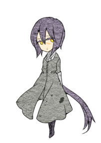 ムシチョウ,性別女,髮色是有點濃的灰紫色, 瞳色是蒲公英色。